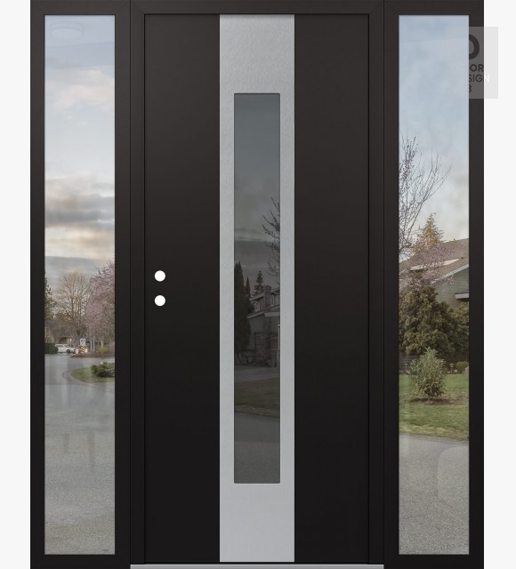 Modern Steel Front Door DIAMOND A1 68" X 80" BLACK/BLACK MIRRORED GLASS PANEL STAINLESS STEEL LHI WITH 2 SIDELITES CLEAR GLASS