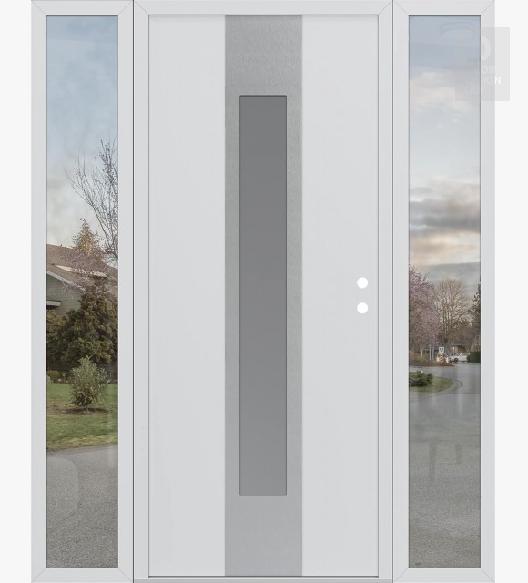 Modern Steel Front Door DIAMOND A1 68" X 80" BLACK/WHITE FROSTED GLASS PANEL STAINLESS STEEL RHI WITH 2 SIDELITES CLEAR GLASS