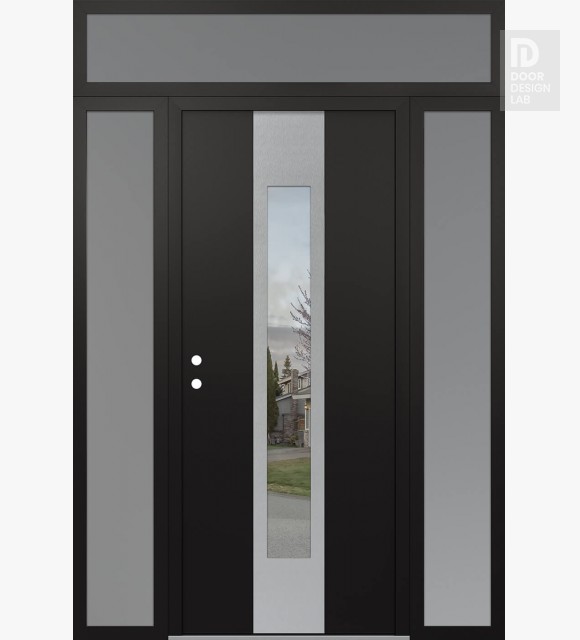 Modern Steel Front Door DIAMOND A1 68" X 96" BLACK/BLACK CLEAR GLASS PANEL STAINLESS STEEL LHI WITH 2 SIDELITES AND TRANSOM FROSTED GLASS