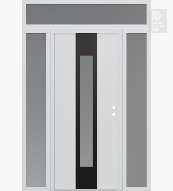 Modern Steel Front Door DIAMOND A1 68" X 96" BLACK/WHITE FROSTED GLASS PANEL BLACK RHI WITH 2 SIDELITES AND TRANSOM FROSTED GLASS