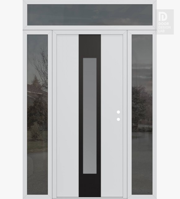 Modern Steel Front Door DIAMOND A1 68" X 96" BLACK/WHITE FROSTED GLASS PANEL BLACK RHI WITH 2 SIDELITES AND TRANSOM MIRRORED GLASS