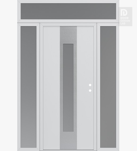 Modern Steel Front Door DIAMOND A1 68" X 96" BLACK/WHITE FROSTED GLASS PANEL STAINLESS STEEL RHI WITH 2 SIDELITES AND TRANSOM FROSTED GLASS