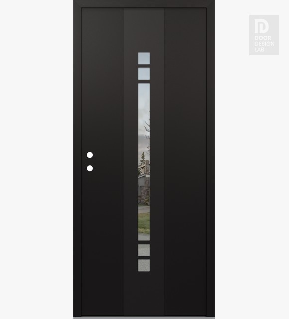 Modern Steel Front Door DIAMOND A4 36" X 80" BLACK/BLACK CLEAR GLASS PANEL BLACK LHI