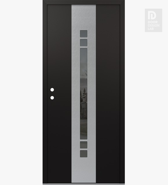 Modern Steel Front Door DIAMOND A4 36" X 80" BLACK/BLACK MIRRORED GLASS PANEL STAINLESS STEEL LHI