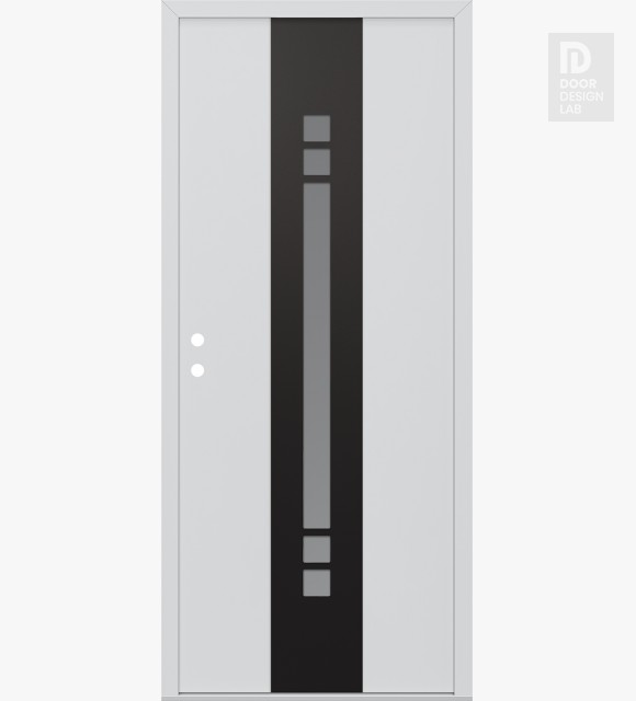 Modern Steel Front Door DIAMOND A4 36" X 80" BLACK/WHITE FROSTED GLASS PANEL BLACK LHI
