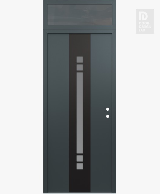 Modern Steel Front Door DIAMOND A4 36" X 96" ANTHRACITE/ANTHRACITE FROSTED GLASS PANEL BLACK RHI WITH TRANSOM MIRRORED GLASS