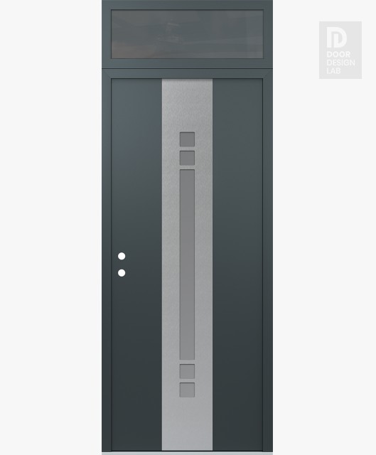 Modern Steel Front Door DIAMOND A4 36" X 96" ANTHRACITE/ANTHRACITE FROSTED GLASS PANEL STAINLESS STEEL LHI WITH TRANSOM MIRRORED GLASS