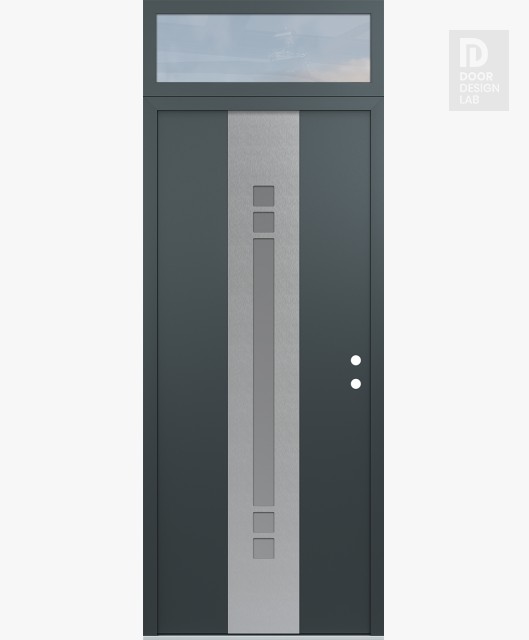 Modern Steel Front Door DIAMOND A4 36" X 96" ANTHRACITE/ANTHRACITE FROSTED GLASS PANEL STAINLESS STEEL RHI WITH TRANSOM CLEAR GLASS
