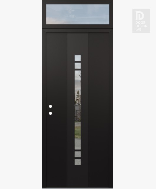 Modern Steel Front Door DIAMOND A4 36" X 96" BLACK/BLACK CLEAR GLASS PANEL BLACK LHI WITH TRANSOM CLEAR GLASS