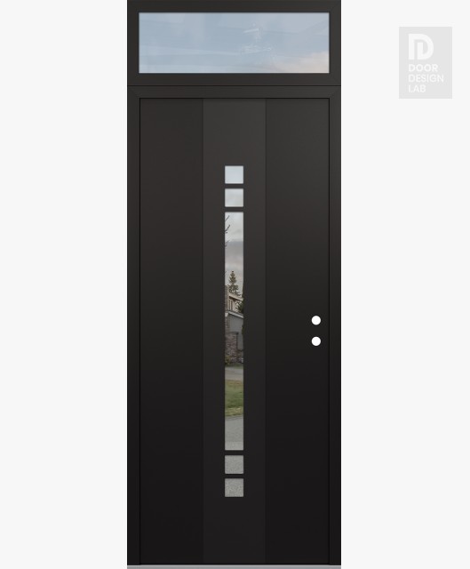 Modern Steel Front Door DIAMOND A4 36" X 96" BLACK/BLACK CLEAR GLASS PANEL BLACK RHI WITH TRANSOM CLEAR GLASS