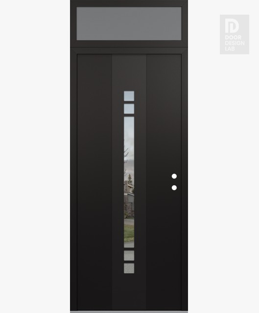 Modern Steel Front Door DIAMOND A4 36" X 96" BLACK/BLACK CLEAR GLASS PANEL BLACK RHI WITH TRANSOM FROSTED GLASS