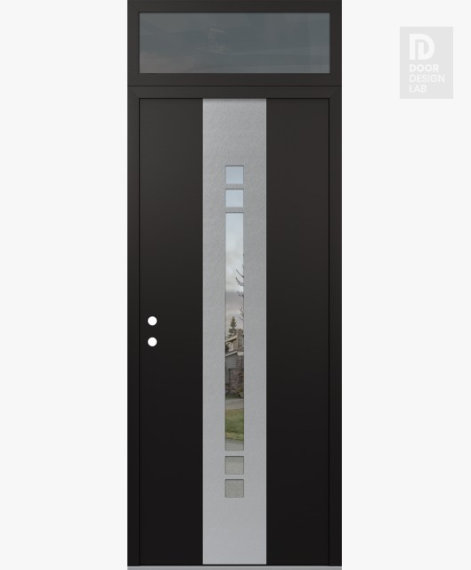 Modern Steel Front Door DIAMOND A4 36" X 96" BLACK/BLACK CLEAR GLASS PANEL STAINLESS STEEL LHI WITH TRANSOM MIRRORED GLASS