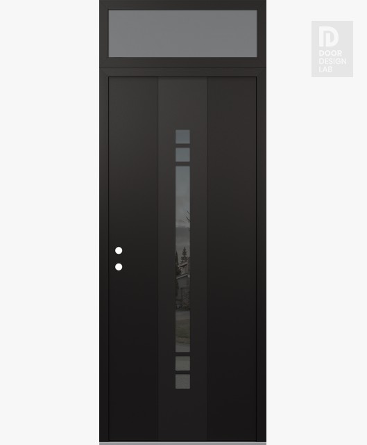 Modern Steel Front Door DIAMOND A4 36" X 96" BLACK/BLACK MIRRORED GLASS PANEL BLACK LHI WITH TRANSOM FROSTED GLASS