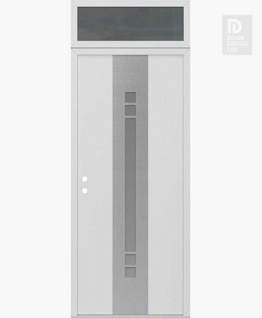 Modern Steel Front Door DIAMOND A4 36" X 96" BLACK/WHITE FROSTED GLASS PANEL STAINLESS STEEL LHI WITH TRANSOM MIRRORED GLASS