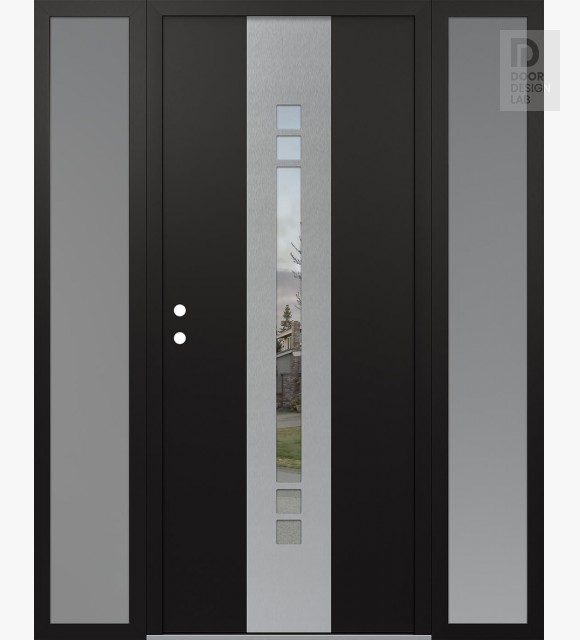 Diamond C7 64" x 80" black/black clear Glass Panel stainless steel LHI with 2 Sidelites mirrored Glass
