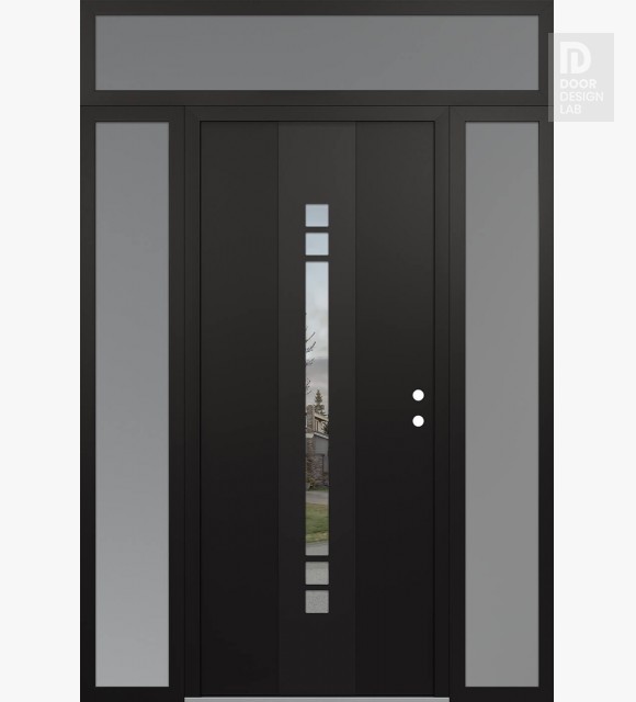 Modern Steel Front Door DIAMOND A4 60" X 96" BLACK/BLACK CLEAR GLASS PANEL BLACK RHI WITH 2 SIDELITES AND TRANSOM FROSTED GLASS