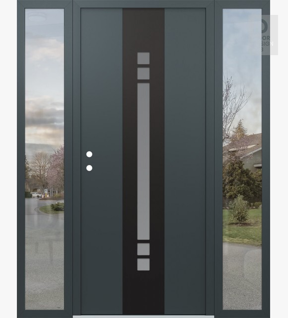 Modern Steel Front Door DIAMOND A4 64" X 80" ANTHRACITE/ANTHRACITE FROSTED GLASS PANEL BLACK LHI WITH 2 SIDELITES CLEAR GLASS