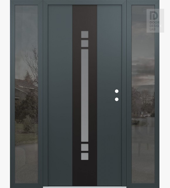 Modern Steel Front Door DIAMOND A4 64" X 80" ANTHRACITE/ANTHRACITE FROSTED GLASS PANEL BLACK RHI WITH 2 SIDELITES MIRRORED GLASS
