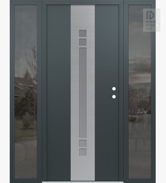 Modern Steel Front Door DIAMOND A4 64" X 80" ANTHRACITE/ANTHRACITE FROSTED GLASS PANEL STAINLESS STEEL RHI WITH 2 SIDELITES MIRRORED GLASS