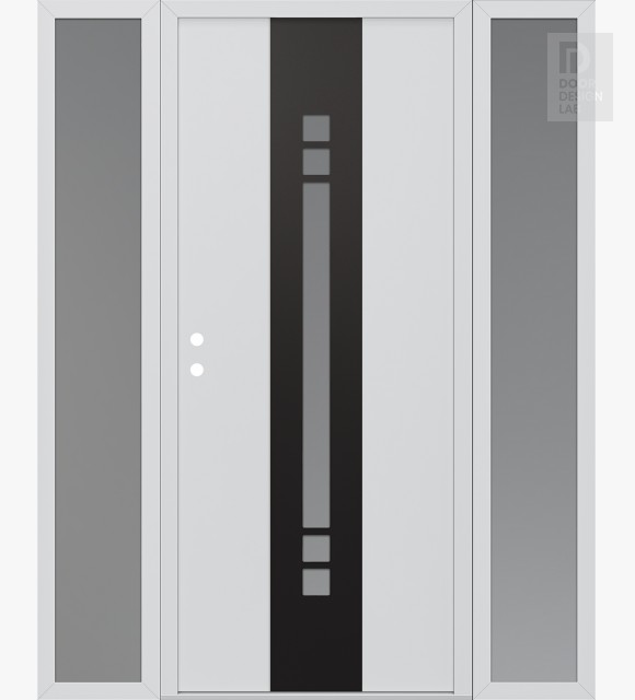 Modern Steel Front Door DIAMOND A4 64" X 80" BLACK/WHITE FROSTED GLASS PANEL BLACK LHI WITH 2 SIDELITES FROSTED GLASS