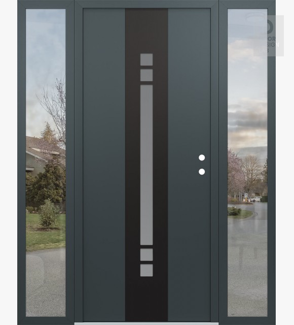 Modern Steel Front Door DIAMOND A4 68" X 80" ANTHRACITE/ANTHRACITE FROSTED GLASS PANEL BLACK RHI WITH 2 SIDELITES CLEAR GLASS