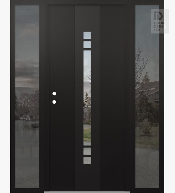 Modern Steel Front Door DIAMOND A4 68" X 80" BLACK/BLACK CLEAR GLASS PANEL BLACK LHI WITH 2 SIDELITES MIRRORED GLASS