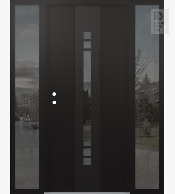 Modern Steel Front Door DIAMOND A4 68" X 80" BLACK/BLACK MIRRORED GLASS PANEL BLACK LHI WITH 2 SIDELITES MIRRORED GLASS