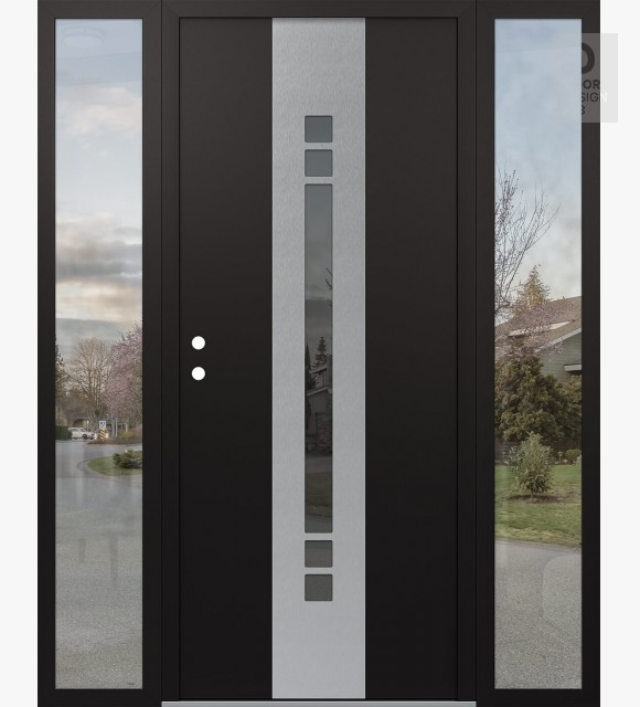 Modern Steel Front Door DIAMOND A4 68" X 80" BLACK/BLACK MIRRORED GLASS PANEL STAINLESS STEEL LHI WITH 2 SIDELITES CLEAR GLASS