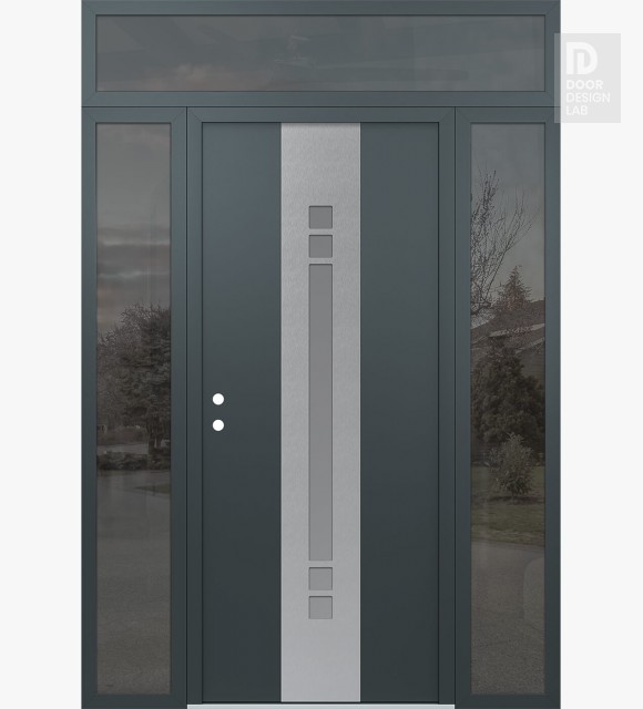 Modern Steel Front Door DIAMOND A4 68" X 96" ANTHRACITE/ANTHRACITE FROSTED GLASS PANEL STAINLESS STEEL LHI WITH 2 SIDELITES AND TRANSOM MIRRORED GLASS