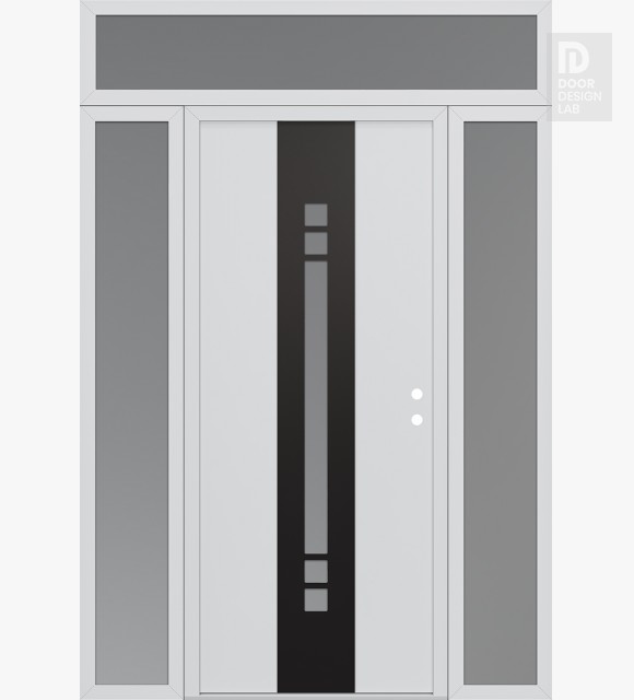 Modern Steel Front Door DIAMOND A4 68" X 96" BLACK/WHITE FROSTED GLASS PANEL BLACK RHI WITH 2 SIDELITES AND TRANSOM FROSTED GLASS