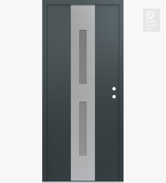 Modern Steel Front Door DIAMOND A6 36" X 80" ANTHRACITE/ANTHRACITE FROSTED GLASS PANEL STAINLESS STEEL RHI