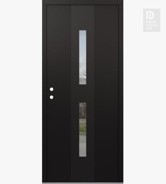 Modern Steel Front Door DIAMOND A6 36" X 80" BLACK/BLACK CLEAR GLASS PANEL BLACK LHI