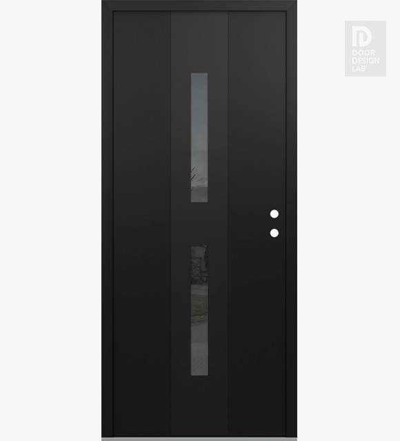 Modern Steel Front Door DIAMOND A6 36" X 80" BLACK/BLACK MIRRORED GLASS PANEL BLACK RHI