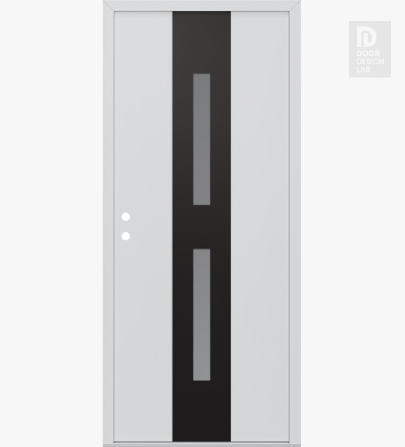 Modern Steel Front Door DIAMOND A6 36" X 80" BLACK/WHITE FROSTED GLASS PANEL BLACK LHI