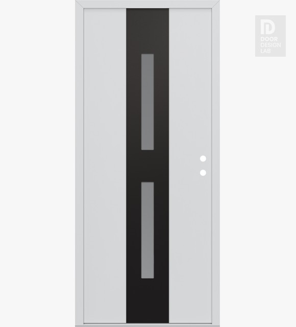 Modern Steel Front Door DIAMOND A6 36" X 80" BLACK/WHITE FROSTED GLASS PANEL BLACK RHI