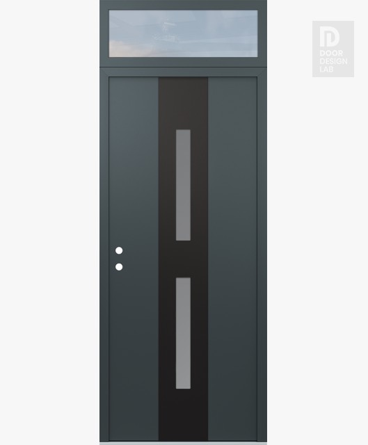 Modern Steel Front Door DIAMOND A6 36" X 96" ANTHRACITE/ANTHRACITE FROSTED GLASS PANEL BLACK LHI WITH TRANSOM CLEAR GLASS