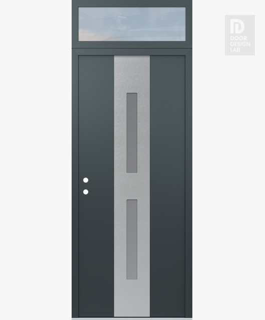 Modern Steel Front Door DIAMOND A6 36" X 96" ANTHRACITE/ANTHRACITE FROSTED GLASS PANEL STAINLESS STEEL LHI WITH TRANSOM CLEAR GLASS