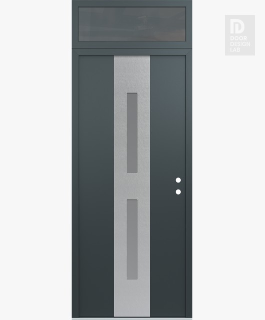 Modern Steel Front Door DIAMOND A6 36" X 96" ANTHRACITE/ANTHRACITE FROSTED GLASS PANEL STAINLESS STEEL RHI WITH TRANSOM MIRRORED GLASS