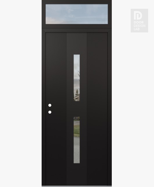 Modern Steel Front Door DIAMOND A6 36" X 96" BLACK/BLACK CLEAR GLASS PANEL BLACK LHI WITH TRANSOM CLEAR GLASS