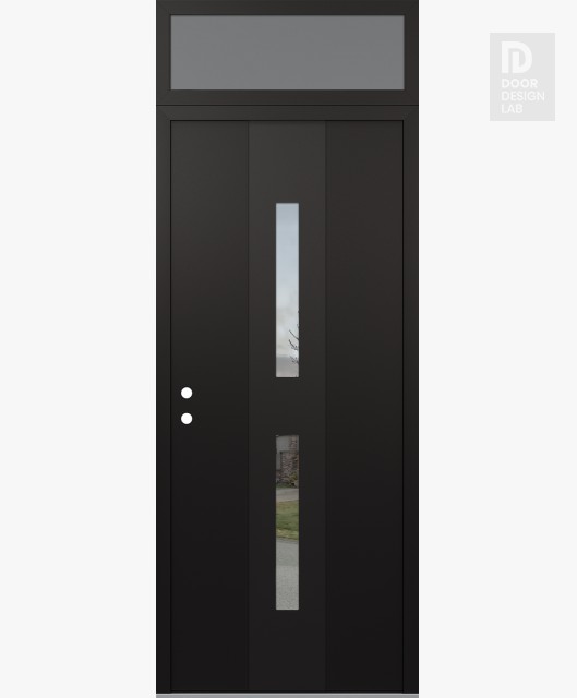 Modern Steel Front Door DIAMOND A6 36" X 96" BLACK/BLACK CLEAR GLASS PANEL BLACK LHI WITH TRANSOM FROSTED GLASS