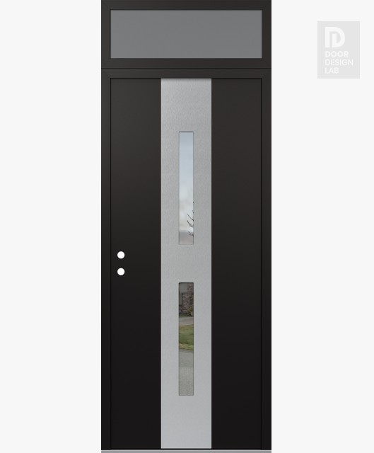 Modern Steel Front Door DIAMOND A6 36" X 96" BLACK/BLACK CLEAR GLASS PANEL STAINLESS STEEL LHI WITH TRANSOM FROSTED GLASS