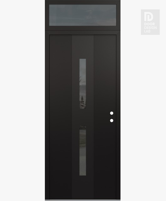 Modern Steel Front Door DIAMOND A6 36" X 96" BLACK/BLACK MIRRORED GLASS PANEL BLACK RHI WITH TRANSOM MIRRORED GLASS