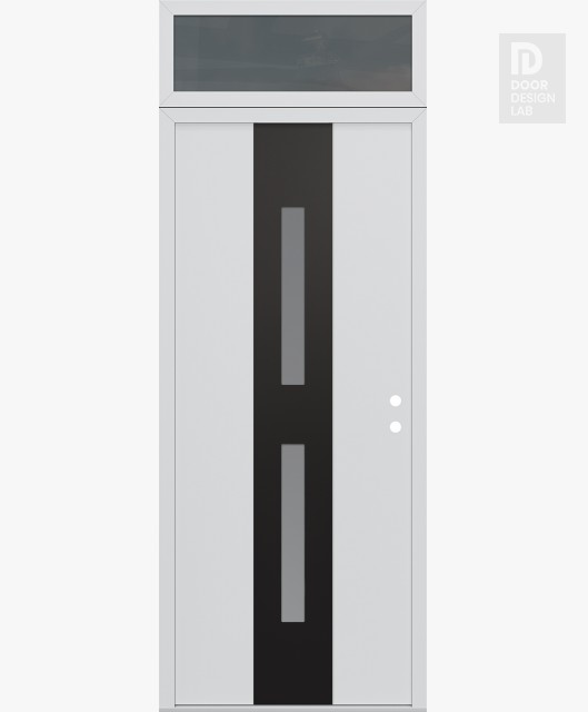 Modern Steel Front Door DIAMOND A6 36" X 96" BLACK/WHITE FROSTED GLASS PANEL BLACK RHI WITH TRANSOM MIRRORED GLASS