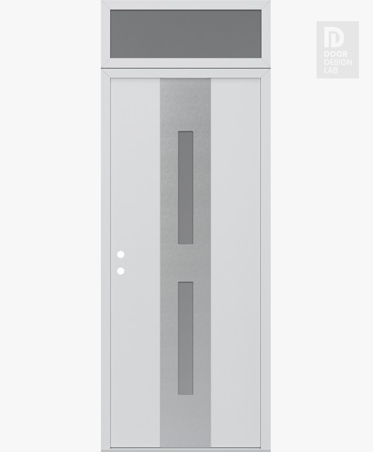 Modern Steel Front Door DIAMOND A6 36" X 96" BLACK/WHITE FROSTED GLASS PANEL STAINLESS STEEL LHI WITH TRANSOM FROSTED GLASS