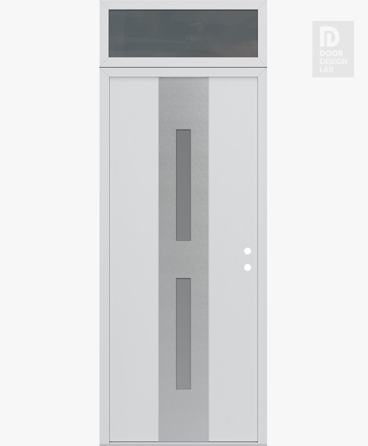 Modern Steel Front Door DIAMOND A6 36" X 96" BLACK/WHITE FROSTED GLASS PANEL STAINLESS STEEL RHI WITH TRANSOM MIRRORED GLASS