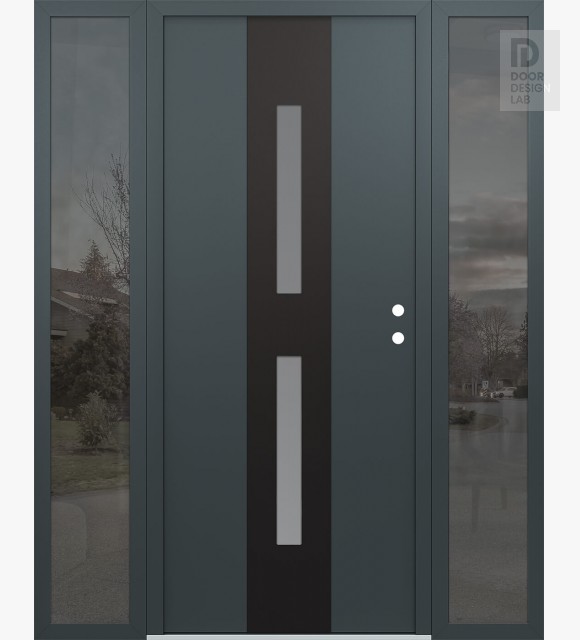Modern Steel Front Door DIAMOND A6 60" X 80" ANTHRACITE/ANTHRACITE FROSTED GLASS PANEL BLACK RHI WITH 2 SIDELITES MIRRORED GLASS