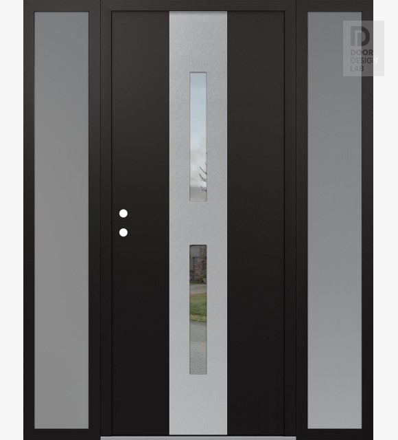 Modern Steel Front Door DIAMOND A6 60" X 80" BLACK/BLACK CLEAR GLASS PANEL STAINLESS STEEL LHI WITH 2 SIDELITES FROSTED GLASS