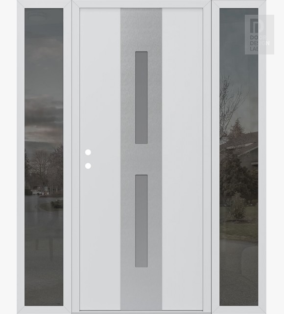 Modern Steel Front Door DIAMOND A6 60" X 80" BLACK/WHITE FROSTED GLASS PANEL STAINLESS STEEL LHI WITH 2 SIDELITES MIRRORED GLASS