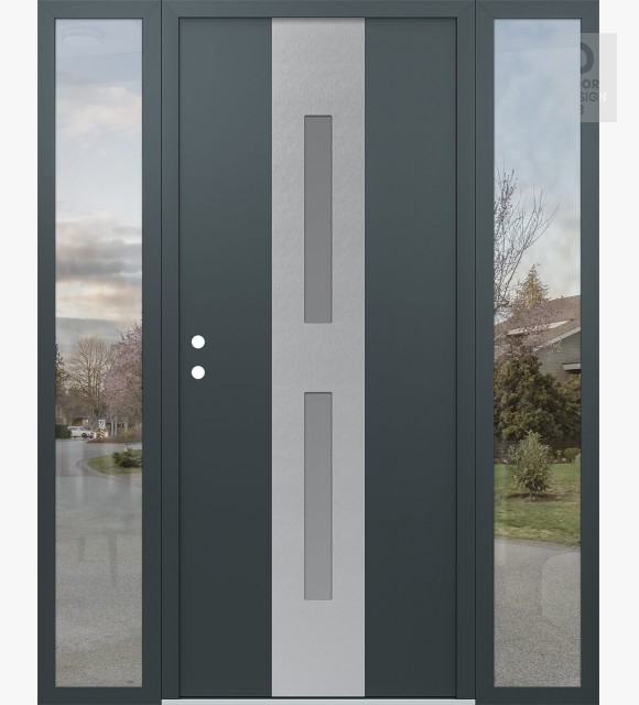 Modern Steel Front Door DIAMOND A6 64" X 80" ANTHRACITE/ANTHRACITE FROSTED GLASS PANEL STAINLESS STEEL LHI WITH 2 SIDELITES CLEAR GLASS
