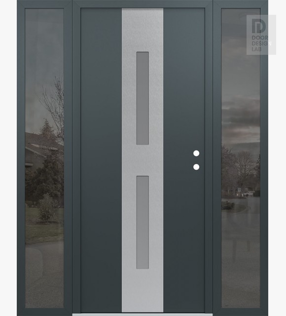 Modern Steel Front Door DIAMOND A6 64" X 80" ANTHRACITE/ANTHRACITE FROSTED GLASS PANEL STAINLESS STEEL RHI WITH 2 SIDELITES MIRRORED GLASS